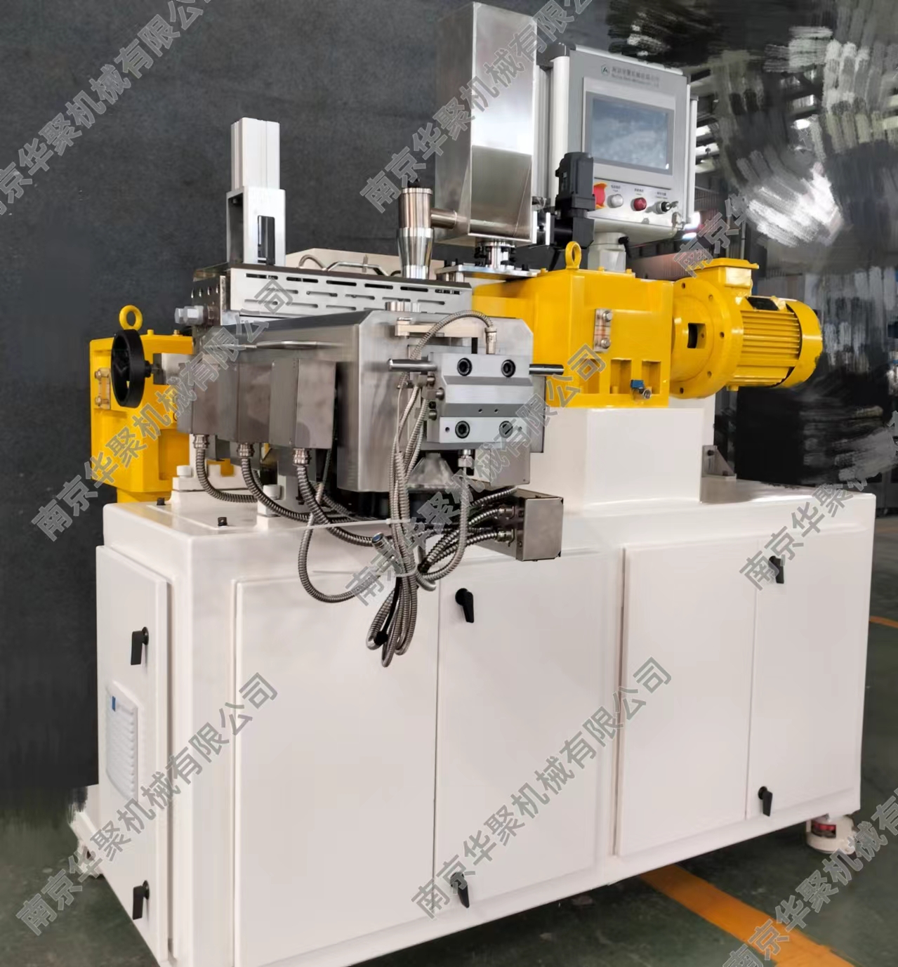 1、占地面積小,主機長寬高為1600X1350X1650mm,帶有移動腳輪。 2、集成連續密煉與雙螺桿的優(yōu)勢特點,連續式擠出,方便各種研發(fā)測試使用。 3、能耗低,裝機裝機功率22KW,實際操作功耗更低,類似一臺中央空調功率。 4、產量范圍1-10Kg/h,方便少量物料測試,伺服電機喂料驅動更穩(wěn)定精確。 5、一體化設計,電控冷卻系統全部集成,無需額外安裝,接電即用。 6、連續密煉機可翻轉腔體和雙螺桿快開機頭設計,方便清理及檢查維護。 7、全系統安全連鎖,觸摸屏操作,多處安全停機保護,使用更放心。 8、整機1噸,方便裝卸。